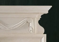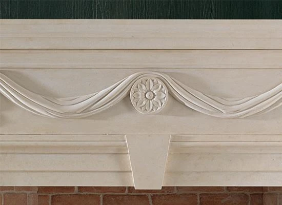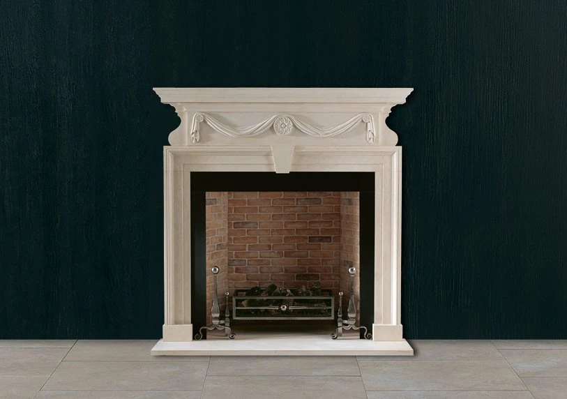 An early 18th century Limestone chimneypiece with an architrave moulding with central keystone beneath a frieze with robustly carved swags of drapery suspended from medallions.