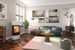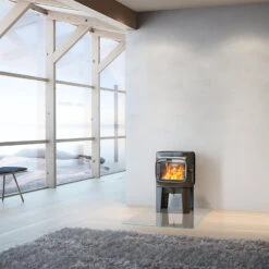 The Contura 320A with its artstone surround and cast iron door combines contemporary style with a touch of rustic charm. The artstone surround has an even, grey hue and is naturally heat-retaining. An open log box comes as standard and a storage drawer is available as an optional extra.