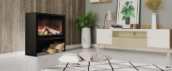 The Dovre 425 traditional electric stove is made from cast iron and features a highly realistic fuel bed, or alternatively Crystal-Ice media for a contemporary effect. This electric stove allows you to select from 14 different lighting settings, including a spectrum of up-lighting colours that create the ideal ambiance for your mood. Using Gazco’s unique Chromalight™ technology, this electric stove offers a variety of energy-saving features, plus the option of enjoying the flames without the heat. An electric fire requires no flue, hearth or chimney and can be moved from room to room.