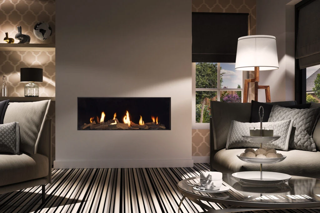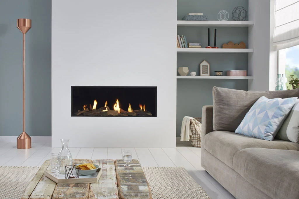 The Global 100 BF is a classic 1 metre wide hole-in-the-wall gas fire in the popular letterbox shape, with a choice of logs, pebbles or anthracite glass fire beds and black or mirrored Ceraglass interiors. It is a balanced flue model that is suitable for homes with no chimney and has an impressive 88% energy efficiency rating.
