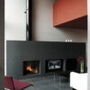 The wood stove has a large glass door that provides a perfect view of the burning logs and is embellished with a pattern that outlines part of the Norwegian coastline. Jøtul F 400 is available in maintenance free enamel or black paint.