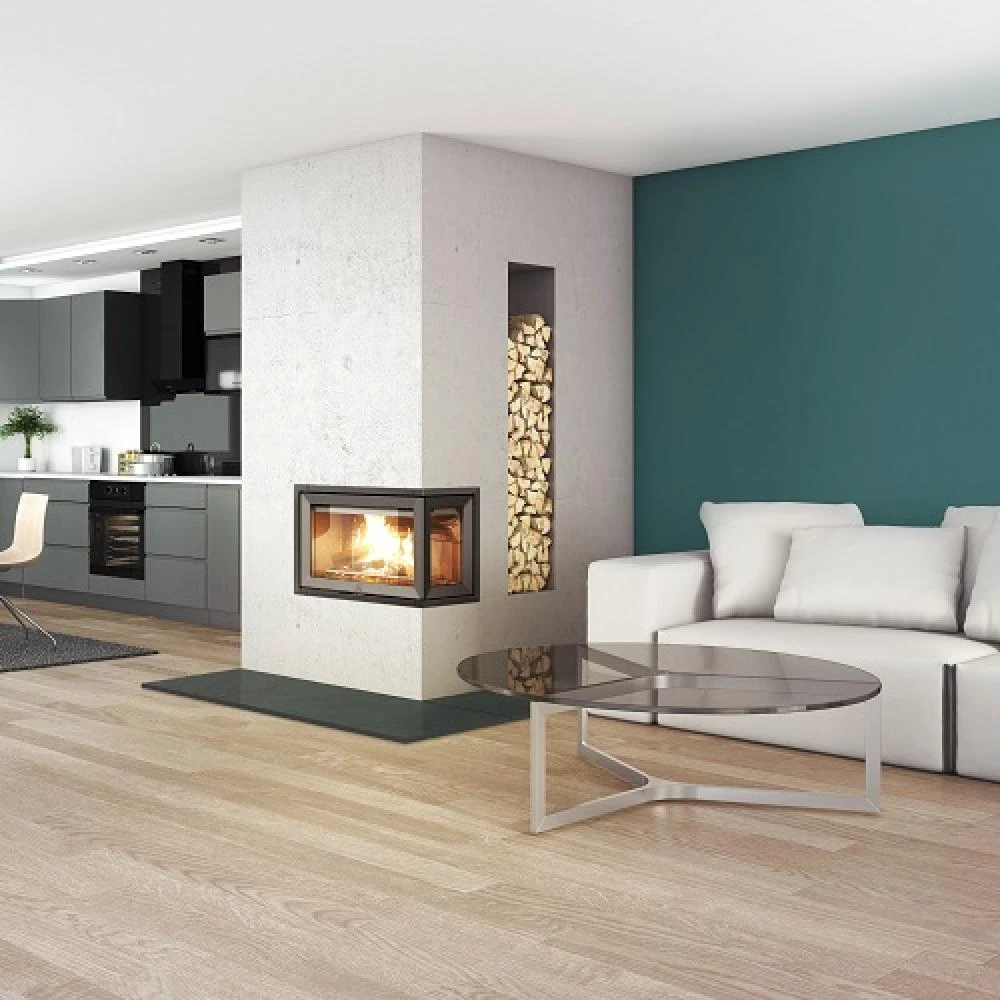 The I 620 FL. Jøtul I 620 is easy to install and is just as suitable as a fireplace insert for open/old fireplaces as for fireplaces with a more contemporary design. It is up to you whether you want glass on one, two or three sides. Despite its size, this insert is designed to burn at an optimal level even at low effect. The burn chamber is light with burn plates made from white vermiculite and durable white enamelled cast iron. Symbols on the air-vents facilitate correct use of the fireplace. Equipped as standard with a slim, removable decorative frame that offers a smooth transition to the firewall. Jøtul I 620 FL have glasses in front and left side.