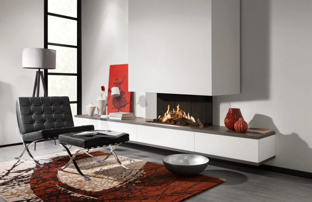 The Kalfire GP115/55S is a 3-sided, built-in gas fire from the Kalfire GP range. The GP range offers an incredible system of gas burners integrated directly into ceramic logs, meaning the fireplace gives a high flame picture and an incredibly realistic campfire look. As with all GP fires from Kalfire the GP115/55S offers the option of the Natural Spark Generator (NSG), which recreates the look of real embers on a log fire as it injects tiny flammable particles into the flames. This fire also has the option of adding a flowing ember underbed LED lighting system. This gives the appearance of a real burning fire even when the flame is off.