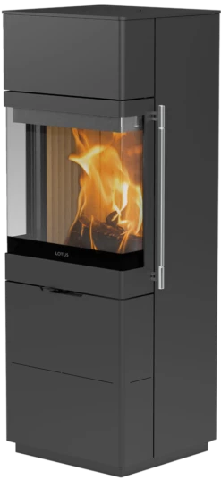 The new Lotus Allure is pioneering design at its best. With its unique angled front glass, you get an exceptionally beautiful view of the flames. Lotus Allure looks like an elegant obelisk in steel and is built from the best and most solid materials.