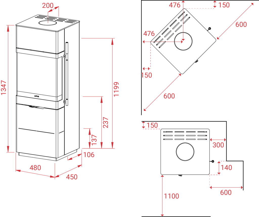 The strong door with cast iron inner frame opens and closes easily by means of the magnetic closing mechanism, ensuring complete tightness of the door. Combustion is easily controlled by a single handle, making daily use easy and convenient.