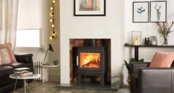 The Nordpeis Glasgow’s elegant and versatile styling ensures it fits into a variety of interiors, ranging from the contemporary to the classical. This eye-catching wood burning stove features a large viewing window for its size, which remains clean thanks to the powerful Airwash system. Producing an ample 5kW heat output at an exceptional 84% efficiency, The Glasgow wood burning stove is suitable for a broad range of homes and can be installed with an external air supply for draft free provision of air.