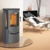 A circular front and cylindrical body create a stunningly unique stove, demonstrating cutting-edge Nordic design and engineering in equal measure.