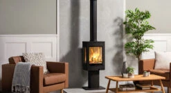 The Uno 1 wood burning stove incorporates an elegant pedestal base, allowing you to enjoy the view of the flames at a higher level. With a superb heating efficiency of up to 82%, this contemporary wood burning stove will appeal to a variety of homeowners.